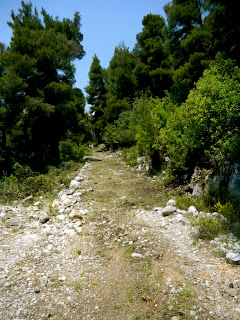 Please find my report on the Loutraki -Paleio Klima-Glossa trails as of 28 April .Overall , my feeling is positive .We we first surprised by the new stone surface they built on some sections of the upward trail to Aghi Anarghiri .True, you need solid shoes with a thick sole to accommodate these new stones , but they will smoothen out with age .What an expense ( I had been told this reddish limestone from the Skopeliot quarry was getting rare to build houses ) ! The good side is that they made it like an old stepped kalderimi , unusable for vehicles . In some places , like from Aghi Anarghiri to Ano Paleio Klima , they renovated the kalderimi using more rounded , brown stones . Back to Kato Paleio Klima, we were relieved to find out that he old mule-path to Machalas , which I feared had been all bulldozed in May 2004 , was still intact ( a bit overgrown but passable ) for about four fifths of its length . Only just before Machalas it’s sadly replaced by a jeep track , but this got narrowed by the vegetation.We then walked down the tiny footpath from the lowest Machalas houses to a track in that lush gorgeous valley , leading to the Loutraki road , with again a shortcut at the bus-shelter after the bend , down to the paralia !