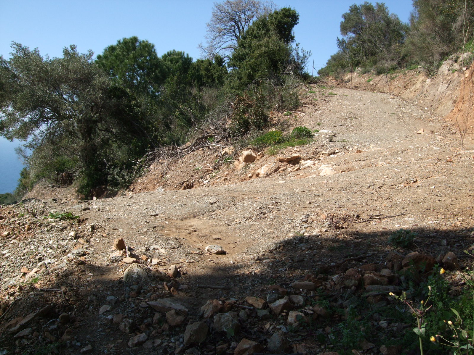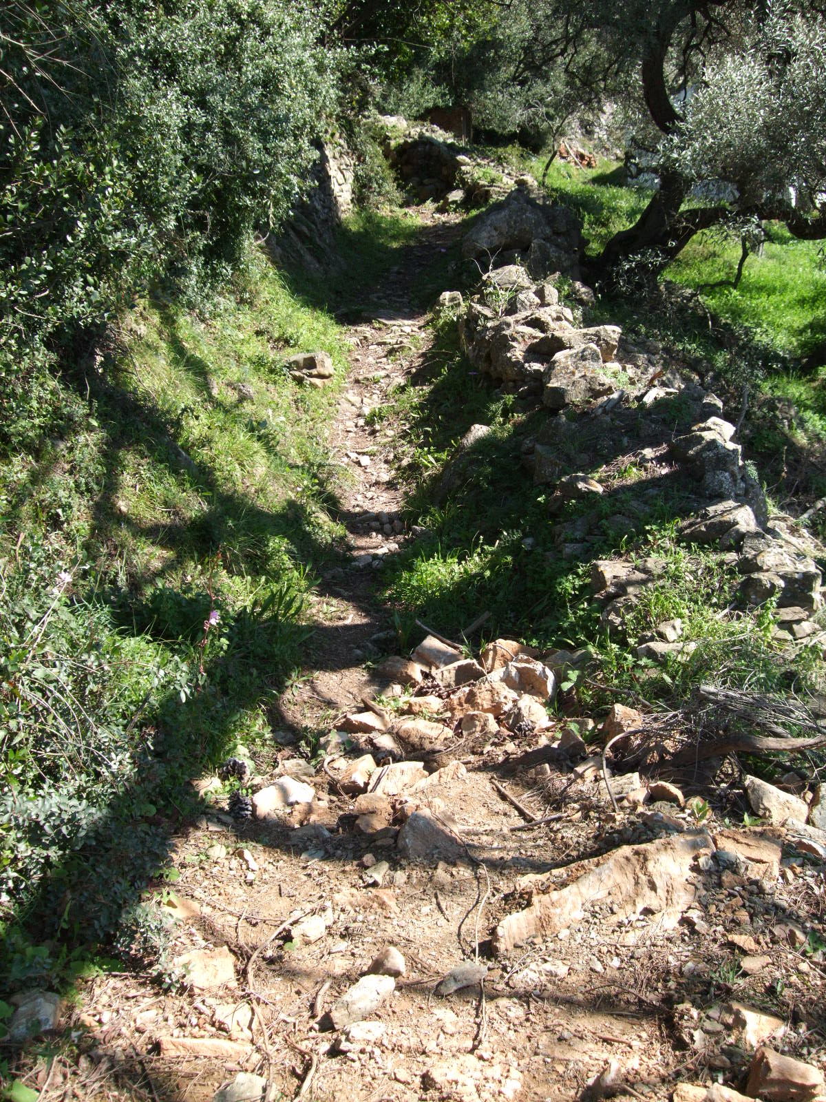 Today I showed a new friend the above stretch of calderimi. He is Greek but not from here. He’s from Crete. The way is as bad as it gets; totally overgrown with rock rose, sage etc. plus trees upright and ones that have fallen across the path. He’s volunteered to start clearing it, starting at the bottom. Whenever he has a couple of hours to spare, he will go there.